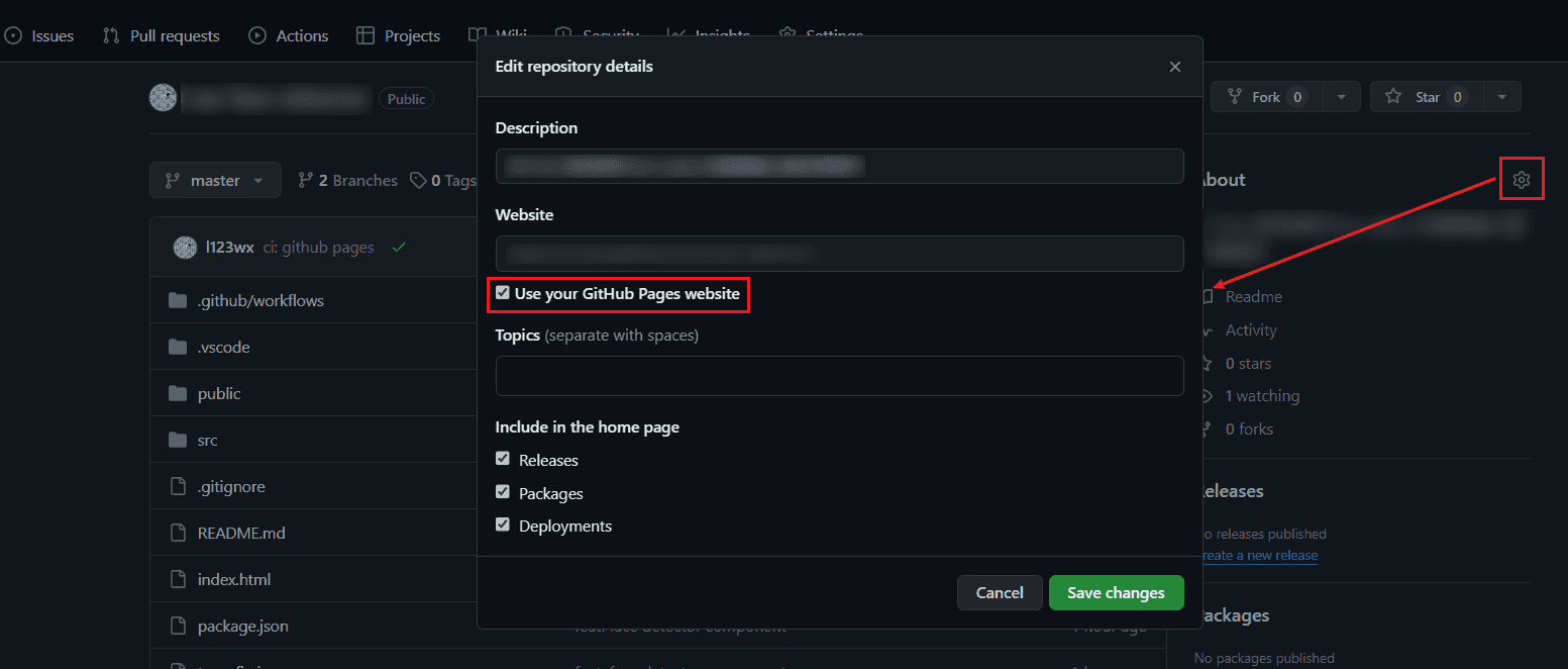 配置完成后,向 website 推送编译好的前端代码就会自动部署到 Github Pages