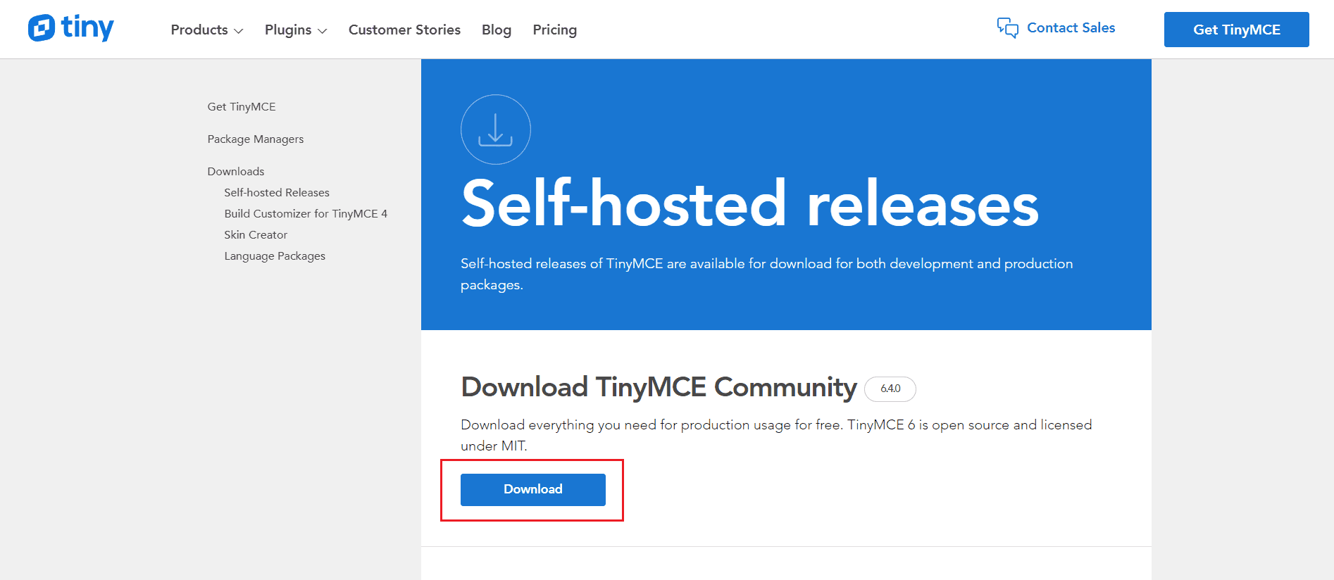 在 TinyMCE 官网下载 代码包,如果没有查看源码的需求,可以直接下载 Prod 版本