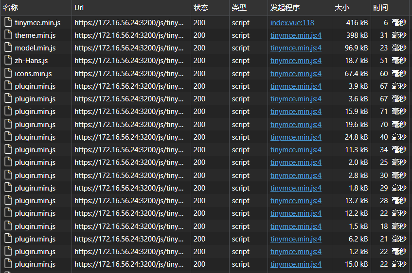 // 我们引入的是 tinymce.min.js,需要使用 suffix 添加 .min 后缀
