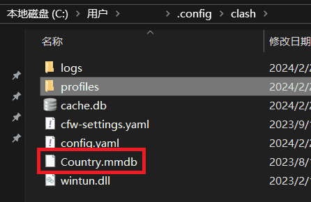 创建 /root/.config/clash/ 目录,并在该目录下添加 config.yaml 和 Conutry.mmdb 文件