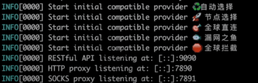- clash成功运行后,终端会打印以下信息: