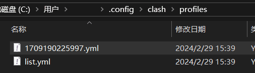 如果没有手动添加配置文件,clash 会自动在这个目录下生成默认的配置文件